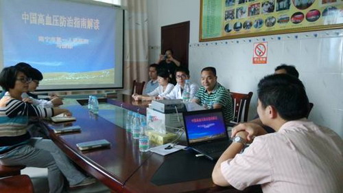 我院马国添副院长在马山县人民医院会议室对医院全体内科医生进行了《中国高血压防治指南》的解读、介绍了慢病防治工作的经验、强调了慢病防治工作的重要性。 马山县人民医院苏乃辉副院长表示此次慢病工作交流会议开展的十分及时,为该院提供很多慢病防治理论知识及实践经验,拟在今后的工作中,不断提高全体医务人员对慢病防治工作的重视和诊疗水平,实现降低疾病负担、为老百姓谋福祉的目标。