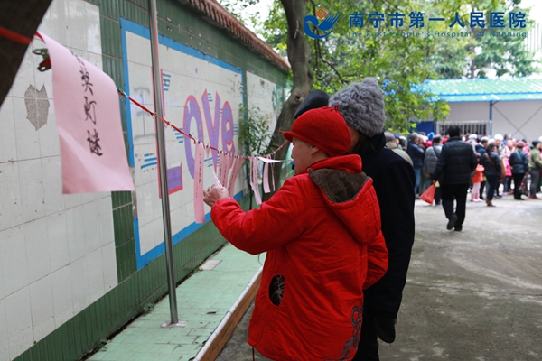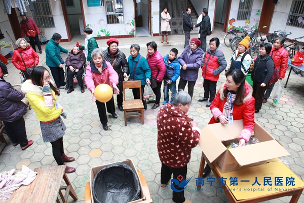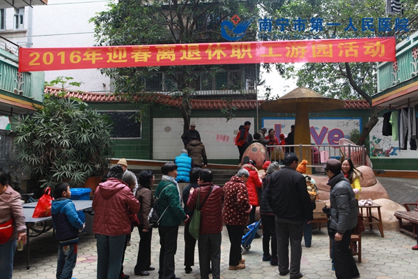为了庆祝2016年春节,弘扬中华民族敬老、爱老传统美德,践行社会主义核心价值观,进一步推动我院离退休职工文体娱乐活动,丰富和活跃离退休职工的文体生活,切实让离退休老干部、老党员度过一个欢乐祥和的春节,南宁市第一人民医院于2016年2月2日上午在医院宿舍区组织离退休职工举行“庆春节、迎新春”游园活动。