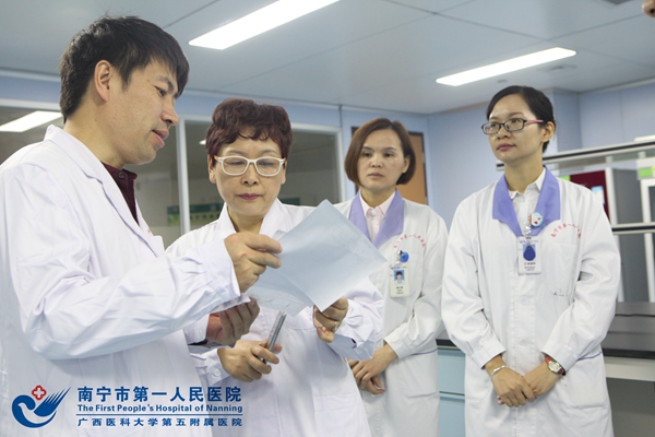 2018年10月26~28日,由中国合格评定国家认可委员会(CNAS)指派的专家组一行5人莅临南宁市第一人民医院,对南宁市第一人民医院医学检验科进行为期3天的ISO15189《医学实验室质量和能力认可》现场评审工作。本次现场评审专家包括:珠海国际旅行卫生保健中心的杨泽教授(评审组组长)、中国人民解放军总医院生化科的贾兴旺教授、四川省人民医院及四川省临床检验中心的杜琼教授、广东省中医院二沙岛分院检验科陈林教授、长沙市中心医院检验科向延根教授。